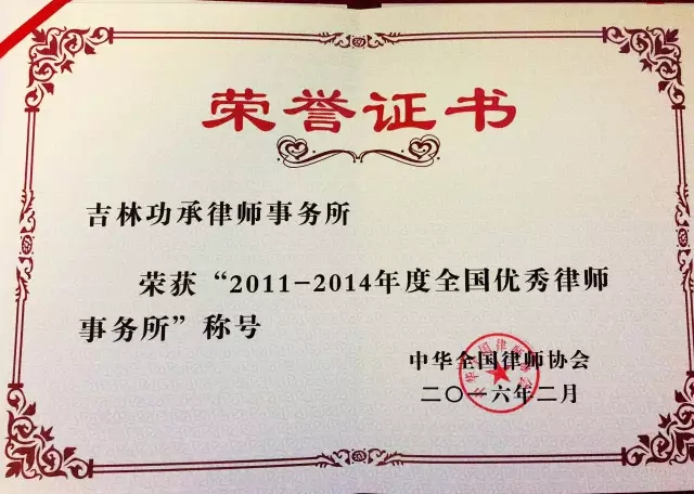吉林功承律师事务所再获“全国优秀律师事务所”殊荣