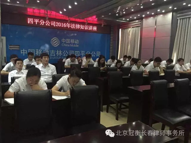 北京冠衡(长春)律师事务所魏涛律师为中国移动通信集团吉林有限公司四平分公司做“移动通信行业法律风险防范与法律基础知识”专题讲座