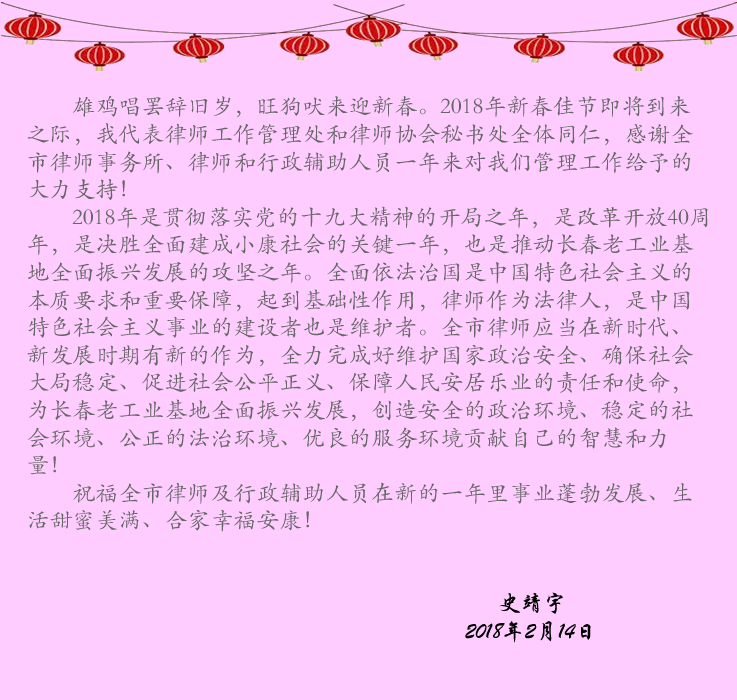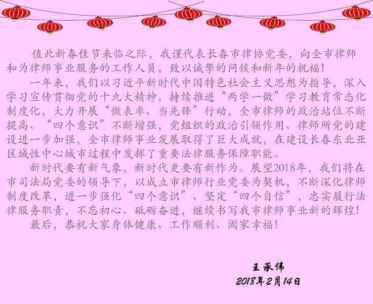 welcome赢乐、长春市司法局律管处恭祝大家新春愉快!