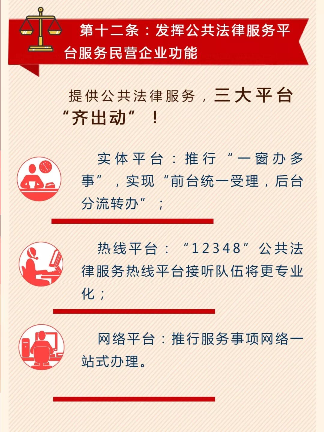 司法行政系统 闻令而动 听令而行 务求实效 为充分发挥司法行政职能作用,积极为民营企业发展提供坚实法治保障、营造良好法治环境、提供优质法律服务,11月10日,司法部出台《关于充分发挥职能作用为民营企业发展营造良好法治环境的意见》(以下简称“《意见》”)。《意见》共有六大方面,20条举措,为打造民营企业蓬勃发展的法治环境筑牢基础。